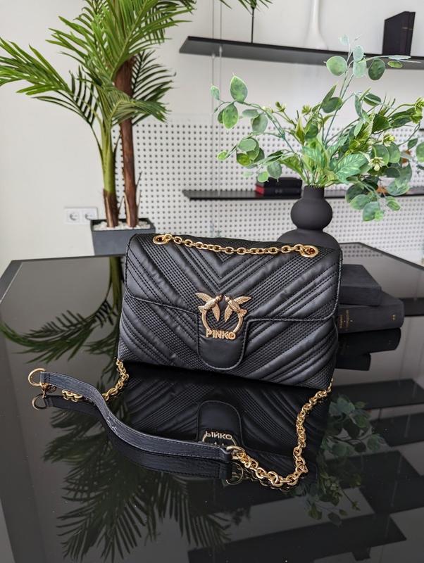 ЯКІСТЬ ЛЮКС код чорний 20312-1 Виконана з якісної екошкіри, прикрашена фірмовим логотипом Pinko. Усередині два відділення розділені кишенею на блискавці. Є лейбл Pinko. Якісна підкладка всередині. Розмір: 28см ширина. 15см висота. 12см глибина. Максимальна довжина ремінця 145 см