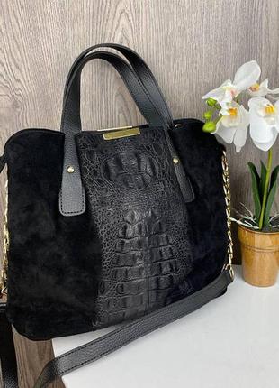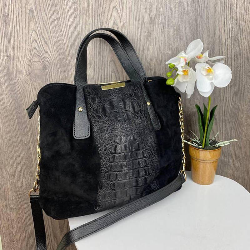 Замшева сумка рептилія на плече, якісна сумка з ручками в стилі рептилії натуральна замша