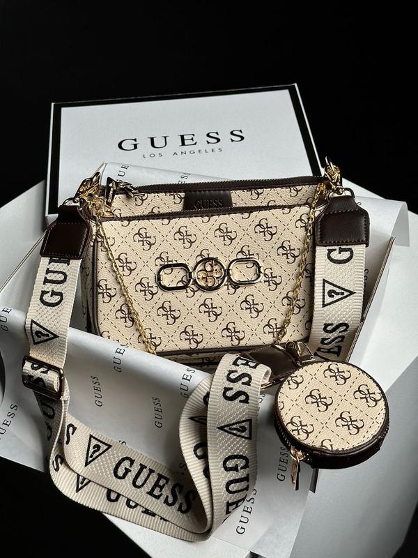 👜 Guess Pochette Multi Cream 📐 Размер: 23 х 16 х 5 см 🧵 Материал: Эко Кожа 🔎 Описание: Сумочка выполнена из экокожи с фирменной канвой. Сумка из двух частей, в каждой из которых одно большое отделение (преимущественно есть также небольшой кармашек внутри). Декоративная цепочка на карабинах из легковесного металла. Внутренняя подкладка из плотного текстиля. Ремень из текстиля регулируется от 82 сантиметров до 117 см. Также на поясе есть небольшой круглый кошелек на молнии для различной мелочи. Комплектуется в брендированной коробке и брендированной бумаге (по дополнительной плате можно приобрести пакет, пыльник и документы).