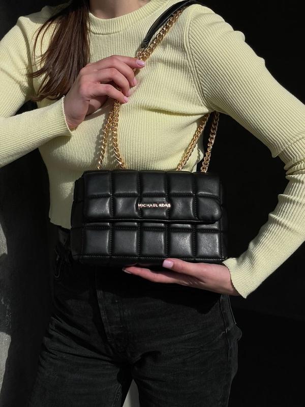 👜 Michael Kors SoHo Small Quilted Leather Shoulder Bag Black 📐 Размер: 22 х 13 х 9 см 🧵 Материал: Эко Кожа Сумка изготовлена из эко кожи, прострочена. Внутри одно большое отделение, есть небольшой карман на застежке. Подкладка внутри из брендированного текстиля. Ручки из эко кожи на цепочках, длина регулируется как для ношения через плечо так и в руке. Комплектуется в брендированную коробку и брендированная бумага (за дополнительную плату можно приобрести фирменный пакет и документы).
