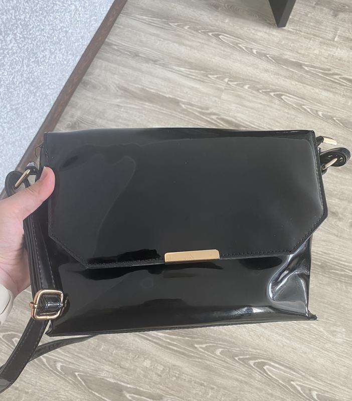 Чорна лакована сумочка. Середнього розміру. Зі шлейкою, що регулюється. Стан дуже хороший. Була в користуванні. Все працює, є мікро подряпини на фурнітурі. Якщо гарно відполірувати виглядатиме як нова😉 У вартість все враховано) Висота 20 см Ширина 28 см Глибина 11 см