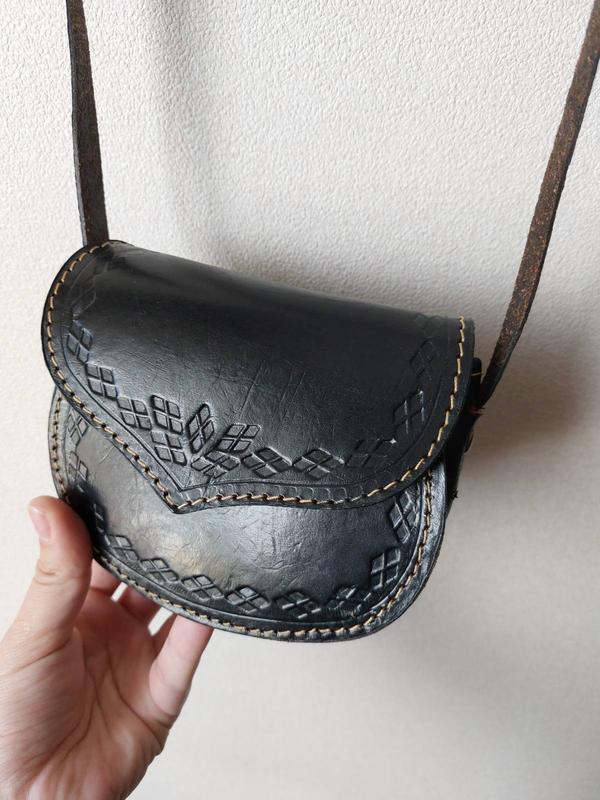 мініатюрна, кожана, стильна дамска сумка, розмір 12 × 15см.