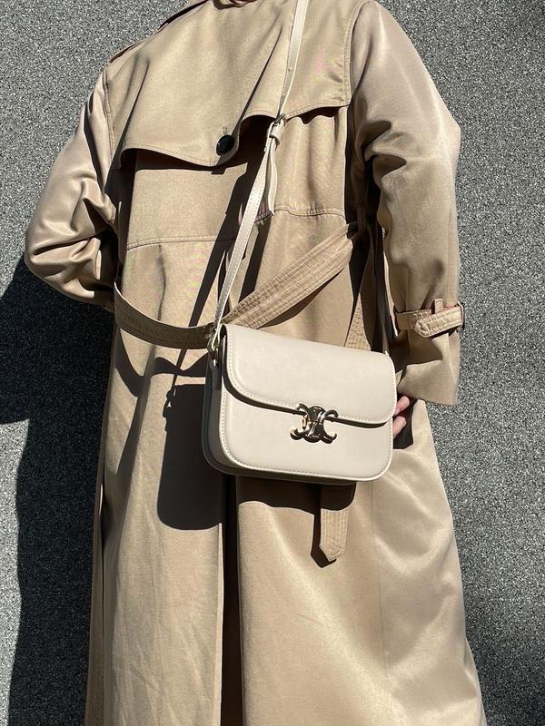 👜 Celine Teen Triomphe Bag in Shiny Calfskin Beige 📐 Розмір: 23 х 17 х 7 см 🧵 Матеріал: Еко Шкіра Сумка виготовлена з гладкої еко шкіри. Усередині одне відділення, є невелика кишенька на блискавці. Підкладка всередині також з еко шкіри. Ремінець вузький з еко шкіри, регулюється по довжині. Комплектується у не брендованій коробці та папері.