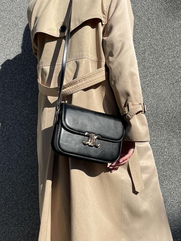 👜 Celine Teen Triomphe Bag in Shiny Calfskin Black 📐 Розмір: 23 х 17 х 7 см 🧵 Матеріал: Еко Шкіра Сумка виготовлена з гладкої еко шкіри. Усередині одне відділення, є невелика кишенька на блискавці. Підкладка всередині також з еко шкіри. Ремінець вузький з еко шкіри, регулюється по довжині. Комплектується у не брендованій коробці та папері.