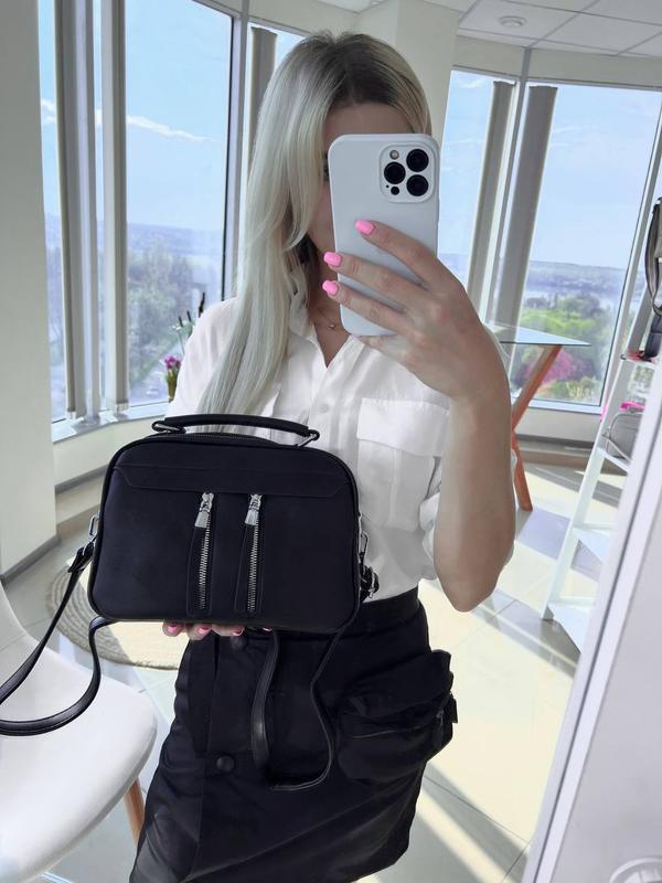 Код 2210 В наявності , дуже зручна модель ! Два окремі відділа ! Зовні три кишені , всередині є кишені ! Є коротка ручка та плечовий ремінь . Розмір 25*18 см
