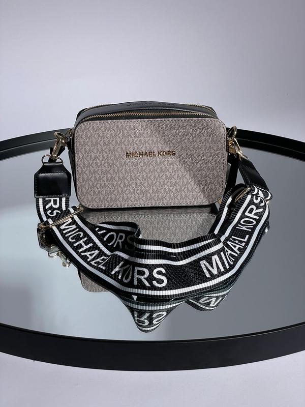 👜 Michael Kors Snapshot Grey 📐 Розмір: 21 х 12.5 х 7 см 🧵 Матеріал: Еко Шкіра Сумка виготовлена з еко шкіри з фірмовим принтом. Усередині два відділення на блискавках, є невелика кишенька позаду сумочки. Підкладка всередині із чорної еко шкіри. Ремінець текстильний з фірмовими написами, регулюється від 63 до 105 сантиметрів у довжину. Комплектується у брендованій коробці та папері (за додаткову плату можна придбати документи, пильовик та фірмовий пакет).