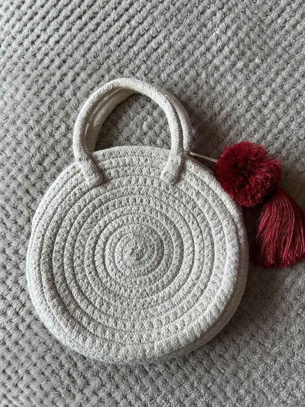 Матеріал мотузок, джгут. Стан ідеальний . Має одне відділення. Без застібок та додаткових відділень. Легка , чудово підійде до літніх образів.