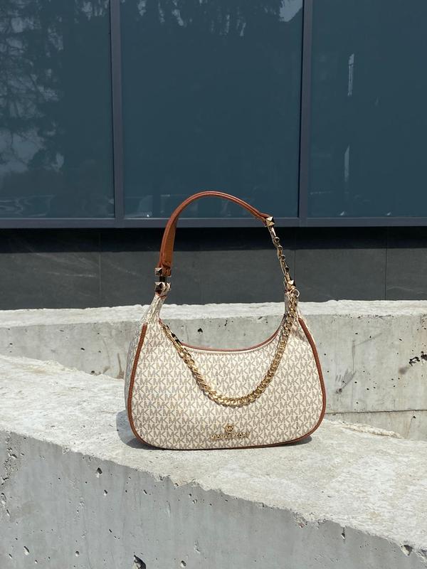 👜 Michael Kors Piper Small Ivory 📐 Размір: 26 х 13 х 9 см 🧵 Матеріал: Еко Шкіра 🔎 Опис: Сумка виготовлена з еко шкіри. Усередині одне відділення, також є невелика кишеня. Підкладка всередині сумки з брендованого текстилю. Закривається сумка на застібці, також є ланцюжок декоративний. Ручка невелика, додатковий довший ремінець не передбачений у комплекті. Комплектується у брендованій коробці та брендованому папері (за додаткову плату можна придбати документи, пильовик та фірмовий пакет).