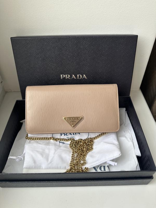 Продаю новую сумку Prada в цвете Cameo с фирменным логотипом бренда. Полный комплект: коробка, чехлы для сумки и цепочки, бирка. Есть золотая цепочка, которую можно снять и носить как клатч. Внутри сумки два отилленья.