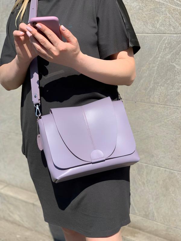 Сумка женская через плечо натуральная кожа серо-сиреневая 1324