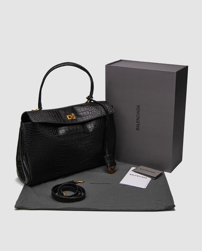 Арт: 99791 ⏺ 5170 грн ⏺ Розмір: 35 х 25 х 10 см ⏺ Матеріал: Шкіра Сумка виконана з текстурної кроко шкіри. Всередині два відділення, також є кишеня на застібці. Більш вмісткою сумку можна зробити відстібнувши заклепки по боках. Підкладка з гладкої шкіри. Фурнітура металева, брендована. Зачиняється на фірмовому механізмі. Ремінець для носіння через плече виконаний зі шкіри, фіксованої довжини, на карабінах. Комплектується в брендовій коробці на магнітах та пильовику, є буклети.