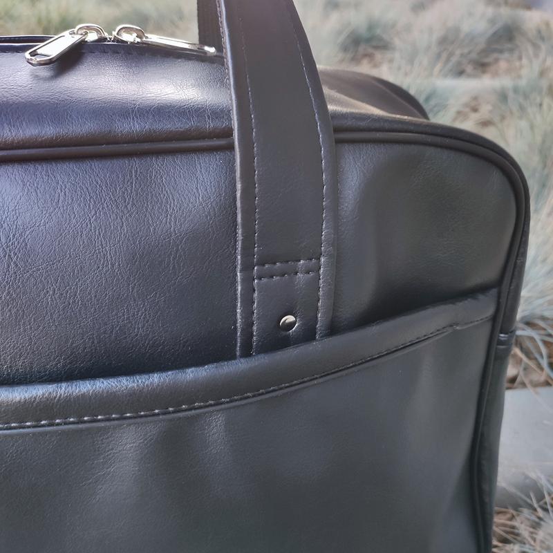 Сумка Ціна 790 грн РОЗМІРИ: Висота – 30 см Ширина – 50 см Глибина – 20 см ХАРАКТЕРИСТИКА: Матеріал – еко шкіра Якісна фурнітура (Європейська) Міцний довговічною матеріал; 4 місткі кишені; Два замку на основному відділенні Кріплення для валізи; Професійне пошиття! В середині кишеню під ноутбук; Посилені лямки і конструкція; Сумка тримає форму; Плечовий ремінь в комплекті. унісекс