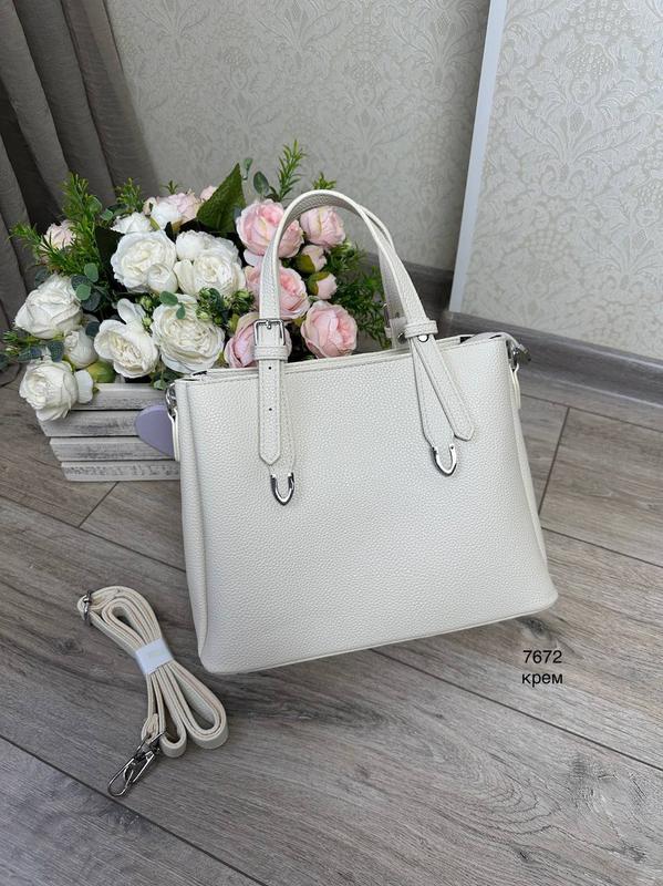 🌺Стильна сумочка ☘️Виготовлена з екошкіри. ☘️Розмір: ширина 28см., висота 22 см.,дно 12 см. ☘️Ремінець довгий до 124 см. ☘️Ручки регулюються висотою від 13 до 17см. ✔️Одне основне відділення на блискавці, два бічні відділення на магнітах. ✔️Форма: тримає форму. Це ідеальний вибір для тих, хто шукає стильну і практичну сумку. Вона підійде як для повсякденного використання, так і для вечірнього виходу. Завдяки своїй формі, сумка тримає форму і виглядає дуже елегантно. 🟡7672