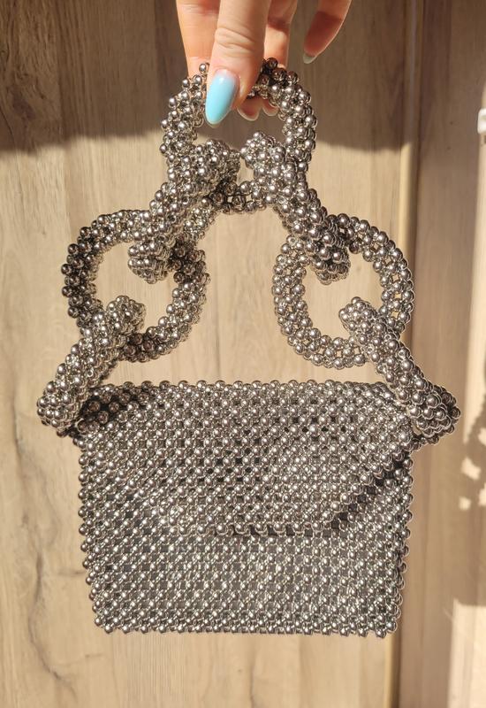 Срібляста сумочка з цікавою ручкою. Довжина 14см Висота 12см Ширина 6см