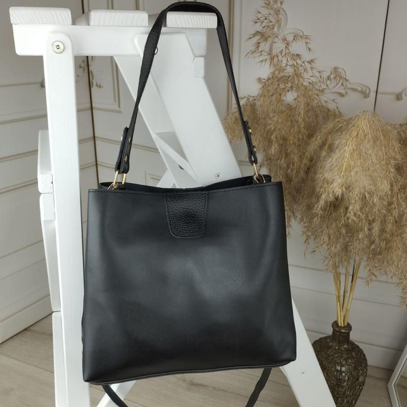Дуже стильна, якісна, містка сумка на три відділення♥️ Знову в наявності Код Д168 ☑️ Матеріал: еко шкіра Туреччина, фурнітура - золото ☑️ Розмір: ширина по дну 28 см,висота 23 см,дно 12 см, знімних ремінці на карабінах,довжина регулюється до 130 см, висота короткої ручки 23 см. ☑️ Особливості: Сумка на три відділення .Основне відділення на блискавці,два відділення на магнітах