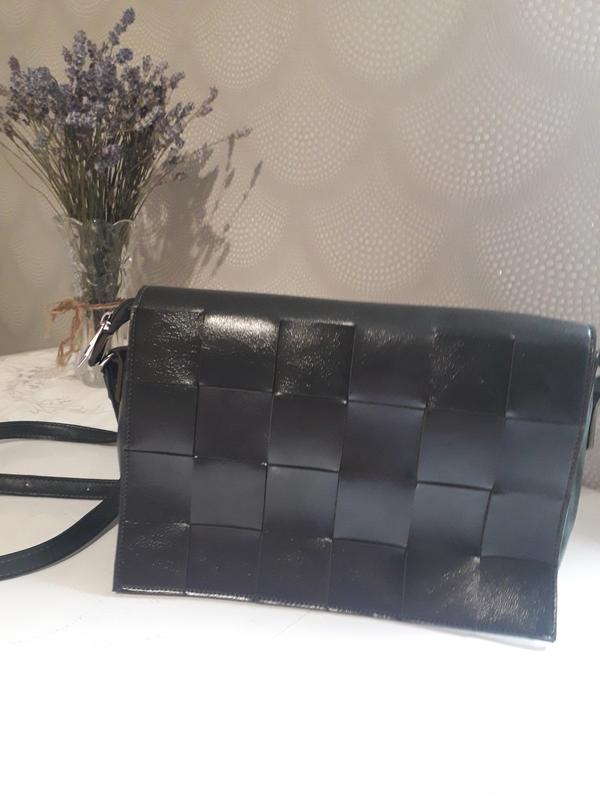 Цікава сумочка смарагдового кольору,має одне містке відлвлення,з боків чималі кишеньки,довжина ручки регулюється.Ширина 30 см,висота 20 см,ширина дна 7 см.