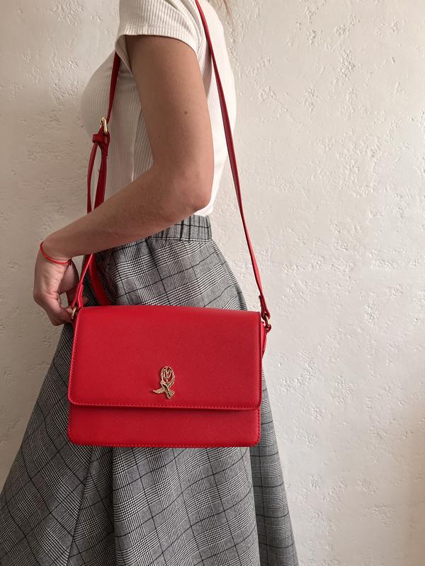 Акцентна червона сумка кросбоді Ремінець регулюється по довжині Довжина 24 Ширина по дну 8 Висота 18 Стан 10/10 400 грн