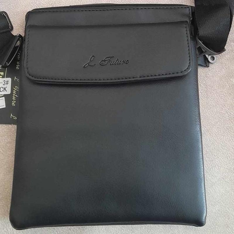 Два отделения застегиваются на одну молнию. В середине одно кишение и одно боковое кишение на молниях также. Сзади изделия кишение на молнии. Спереди кишение, внутри нее отделение для визиток и карточек выдвижно. Ручка регулируется. Размеры: 21см*16 см*4см