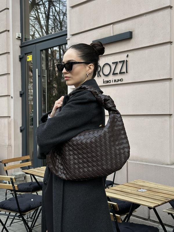 Арт: 99777 ⏺ 3270 грн ⏺ Розмір: 48 х 27 х 3 см ⏺ Матеріал: Шкіра Сумка виготовлена з гладкої плетеної шкіри. Всередині одне велике відділення, також є кишеня на застібці. Підкладка з гладкої шкіри, з фірмовим тисненням. Зачиняється відділення на застібці. Додаткових ремінців - не передбачено. Комплектується у небрендову коробку та пильовик, є буклети