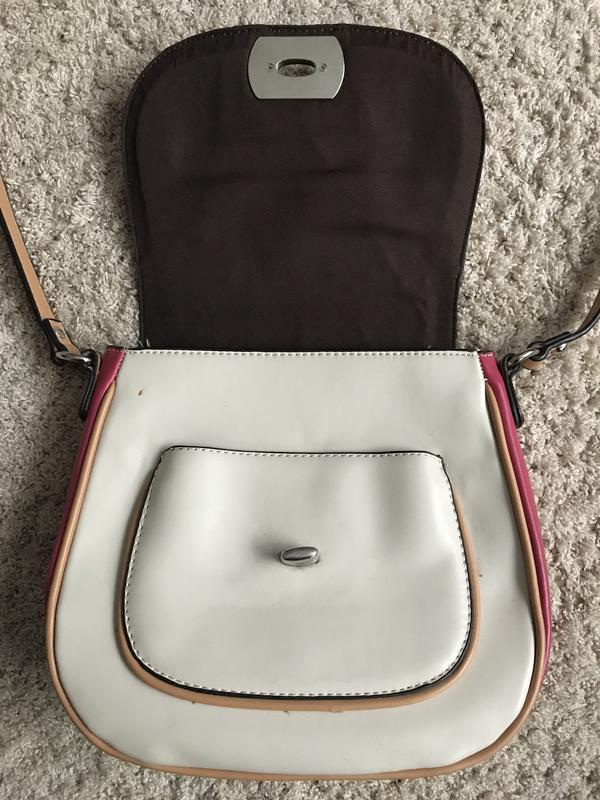 Сумка трьохцветная(коричневий,рожевий,молочний),стан відмінний ,в шкарпетці була тільки 2 рази.Одягається через плече