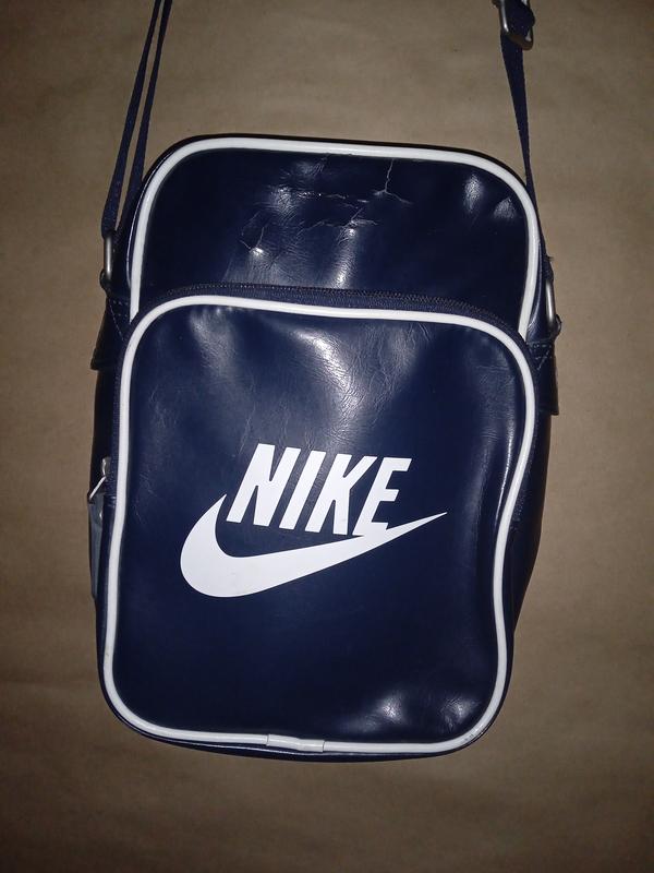 Nike сумка через плече , оригiнал,гарний стан,в серединi як нова,трохи потрiскався дерматин зверху,можливо був якийсь фактор(не критично.).З Англii.Для тих хто хоче саме оригiнал а не пiдробку.Ремень можна регулювати.Блискавки працюють iдеально.25на 18по швам.Логотип iдеальний. Оплата на карту.