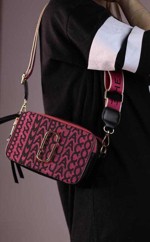 Арт: 0025 Опис: 💎Розмір: 20х12х7 💎Матеріал: Текстиль/Еко шкіра Сумка виготовлена з текстилю та еко шкіри, має одне відділення, яке застібається на дві блискавки. Підкладка текстильна. Ремінь текстильний з написом бренду Marc Jacobs на карабінах, шириною 4 см, регулюється по довжині від 70 см до 115 см. На звороті маленька відкрита кишенька. Фурнітура золотистого кольору. Пакування: брендова коробка, папір, наповнювач, наліпка. 1470 грн.