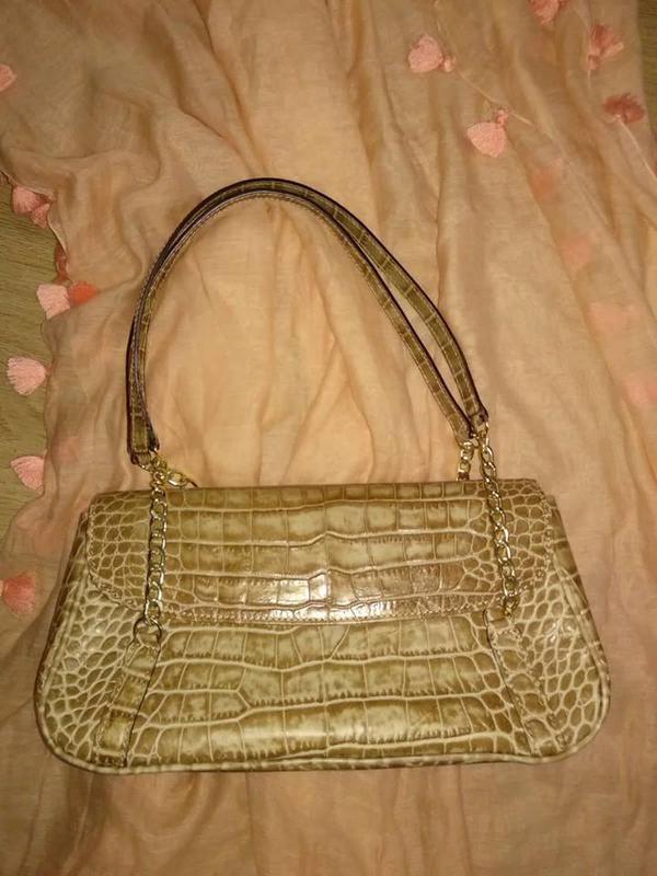 Сумочка Cristian,Италия,цвет беж,натуральная кожа,тисненая по кожу рептилий,подкладка тканевевая и натуральный замш,одно одделение, карманчи к на молнии,состояние новой,без дефектов,размер:длина 27см, ширина дна 8 см,высота 15 см,длина ручек 62 см.