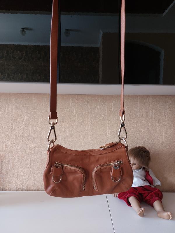 Оригінальна шкіряна сумка відомого бренду Ted Baker , в ідеальному стані, дуже гарна модель, розміри: ширина 27 см, висота 14,5 см, довжина ручки з карабіном 119 см. Ручки можно робити коротші.