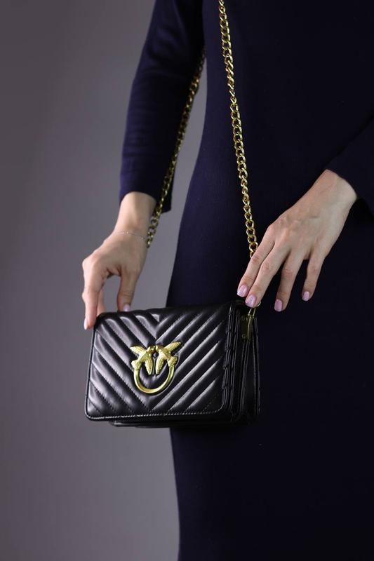PINKO Love Click Classic Quilt black Арт: 1804 Опис: 💎Розмір: 19х14х10 💎Матеріал: Еко шкіра Сумка виготовлена з якісної стьобаної еко шкіри, має два відділення та посередині кишенька, яка застібається на блискавку. Підкладка виготовлена з еко шкіри чорного кольору. Плечовий ремінь - ланцюжок зі вставкою з еко шкіри. Фурнітура золотистого кольору. Пакування: брендова коробка, папір, наповнювач, наліпка. 2100 грн.