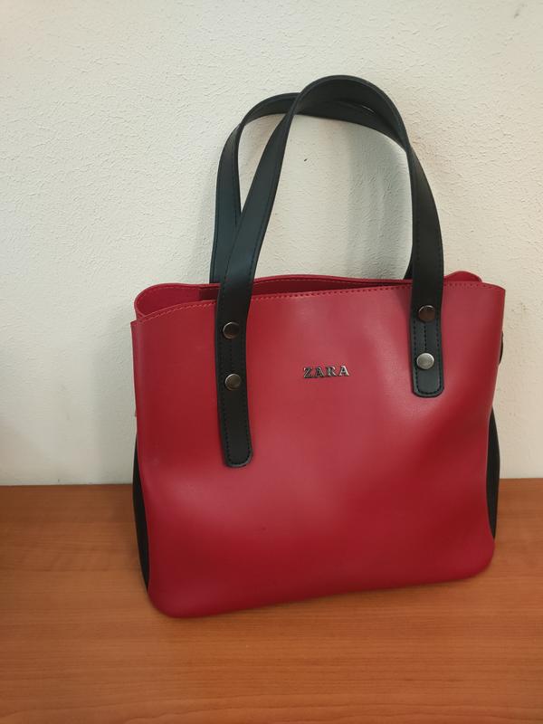 Сумка фірми ZARA червоного кольору. В середині три відділи.