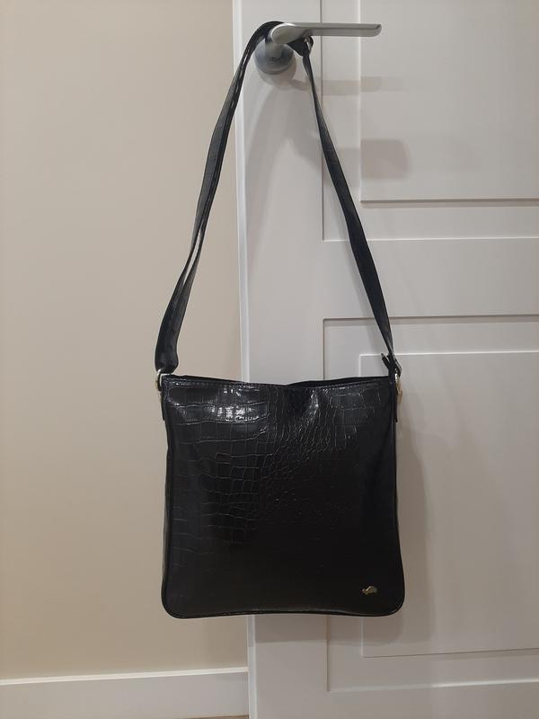 Стильна сумочка на ремінці, що регулюється. Має одне відділення, є кишенька на блискавці та кишенька для дрібниць. Трохи була у вжитку. Шкірзам.