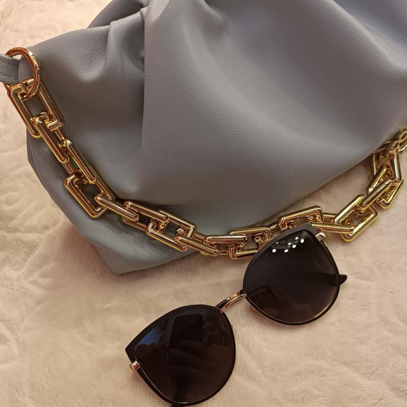 Чудова міні сумочка з ременем ланцюгом( також є звичайна тонка ручка, що прив'язується, тоді вийде більш повсякденний варіант). Всередині одне відділення, без замку, металеві дуги просто прилягають одна до одної в закритому варіанті.
