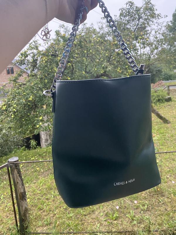 Колір хакі. Нова. Цепочка як маленька ручка. На плече є широка тканева. Кріплення по боках. 3 відділення. Нова