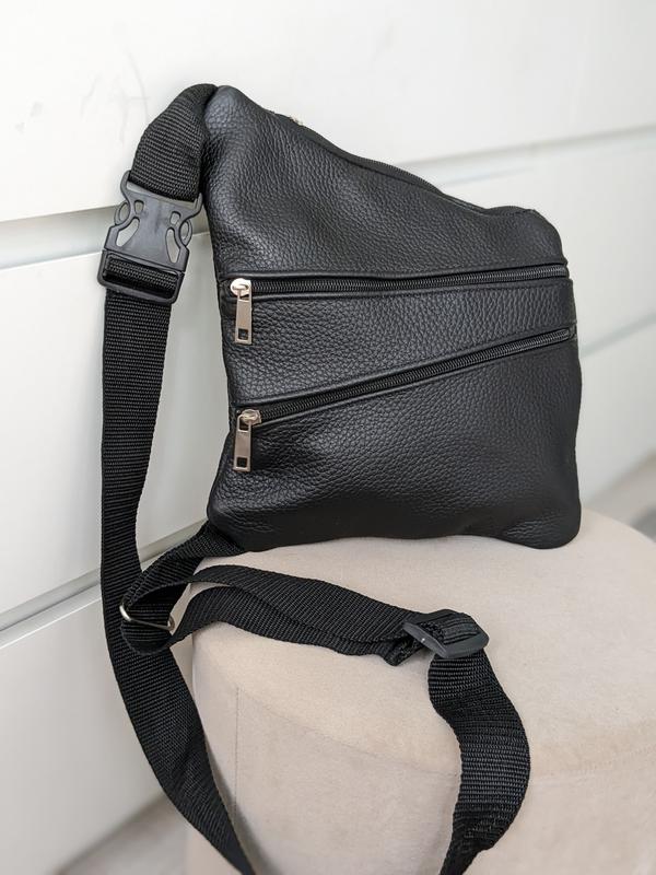 Висота стінок: меншої 20см, більшої 26см, ширина сумки 3см, глибина 2.5см. Сумка дуже зручна для щоденного використання, в дорогу, не буде габаритною і одночасно багато вміщає. Виконана із якісної натуральної шкіри. Довгий регульований ремінь (максимально 130см)