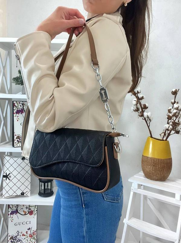 828488 Розпродаж ❤️🔥 Сумка текстурна Кольор: чорний ; білий ; айворі Ремінець комбінований з декором Ремінець регулюється Матеріал: екошкіра Розмір : 23/15