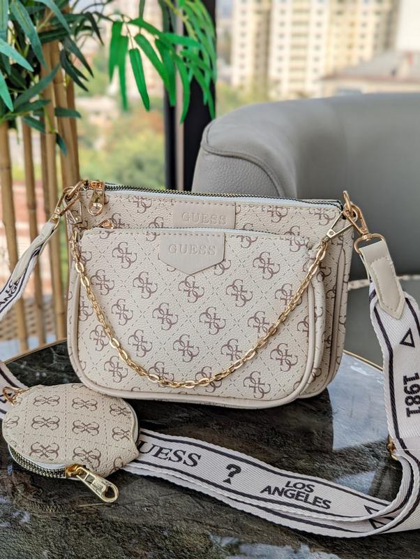 Матеріал: екошкіра. Розмір великого клатча 22х15х5см. Розмір меншого 17х12х5см. Діаметр круглої сумочки 9см. У комплекті довгий ремінь, максимальна довжина якого 120см.