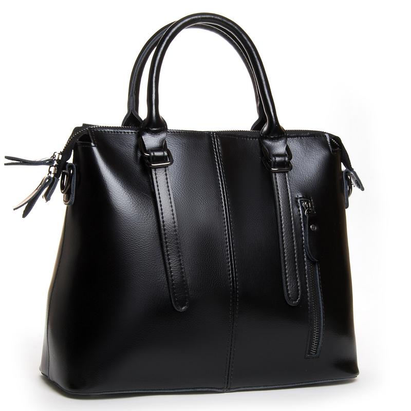 Виготовлена з натуральної шкіри. Закривається на блискавку. Всередині знаходиться подвійне відділення, розділене кишенею-перегородкою на блискавці, подвійний відкритий кишеню і кишеню на блискавці на внутрішніх стінках сумки. На фасаді і зворотному боці є кишені на блискавці. Сумка має жорстке дно на металевих ніжках. У комплекті регульований плечовий ремінь. Розмір (см.) 33 * 27 * 13, висота ручок 11 см.