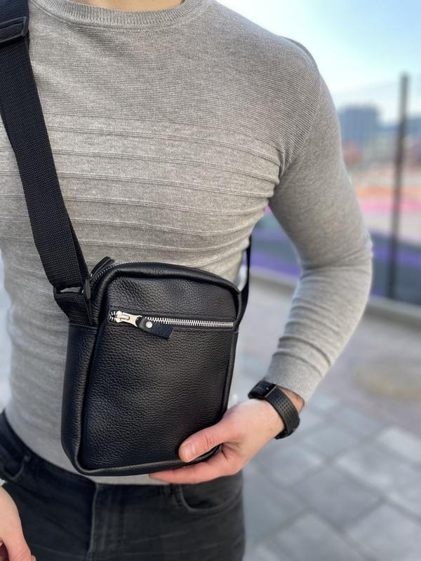 Матеріал: натуральна шкіра Регульований плечовий ремінець Застібка-блискавка М'який на дотик матеріал 3 зовнішні кишені на замку 1 внутрішня кишеня на замку Висота: 24 см Ширина: 19 см Доставка НП, оплата на картку