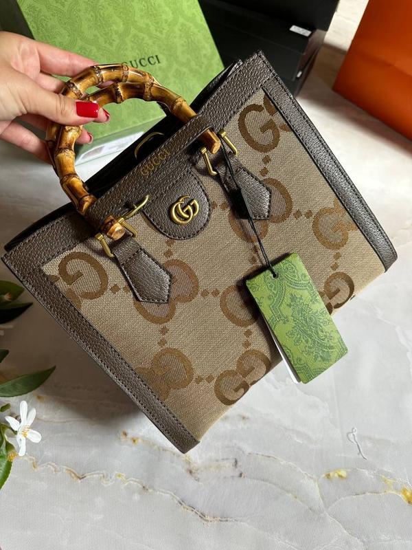 Сумка-тоут Gucci Diana з мотивом jumbo GG Повна брендова упаковка Ручка бамбук 🎋 Серійний номер Довгий плечовий ремінь 27х23.5х11см 5150грн #gucci