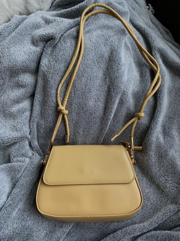 Маленька сумка на довгому ремінці,який знімається. Всередині є загальне відділення і внутрішня кишенька на замочку. Сумка має дефект-поріз.