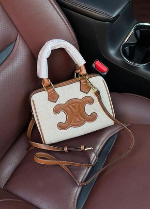 👜 Celine Small Boston Cuir Triomphe in Textile and Calfskin 📐 Розмір: 20 х 14 х 9 см 🧵 Матеріал: Текстиль 🔎 Опис: Сумка виготовлена з щільного текстилю та еко шкіри. На лицьовій стороні лого тиснене з натуральної шкіри, прострочене. Всередині одне велике відділення, є невеличка кишеня. Підкладка всередині з щільного текстилю. Ручки з натуральної шкіри, прострочені. Також у комплекті більш довгий ремінець на карабінах, з невеликим діапазоном регулювання. Комплектується у фірмовій коробці на магнітах, пильовику, пакетику, є буклетики.