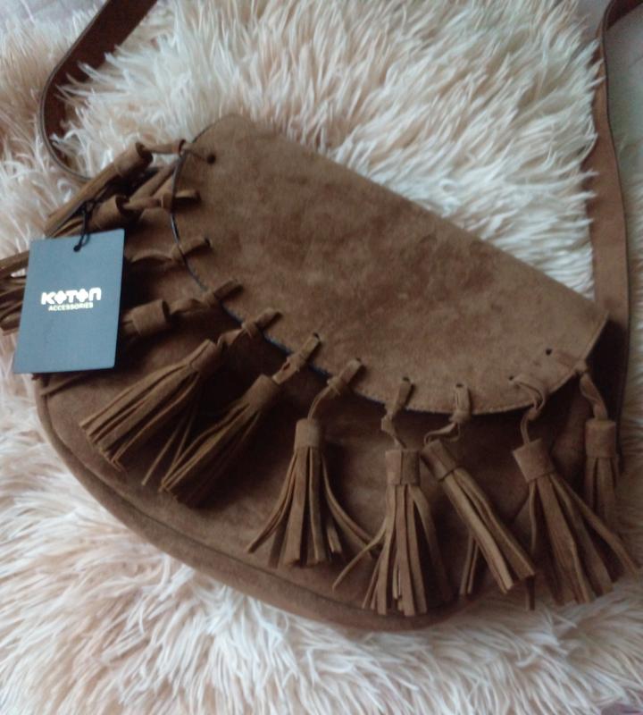 сумка через плече з бахрамою замшева коричневого кольору