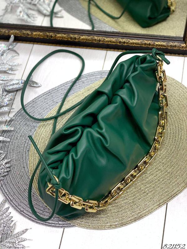 821152 Новинка❤️🔥 Сумка Боттега ланцюжок та ремінець Ціна : 1450 грн Розмір: 28/17 Матеріал: екокожа люкс якість Колір: чорний; зелений ;кемел Форму тримає супер Дуже крутий ланцюг метал і ремінець (регулюється довжина самостійно) - все знімне за бажання Підходить під будь-який Look ✅Ремінець просочується в ланцюг і носитися спільно