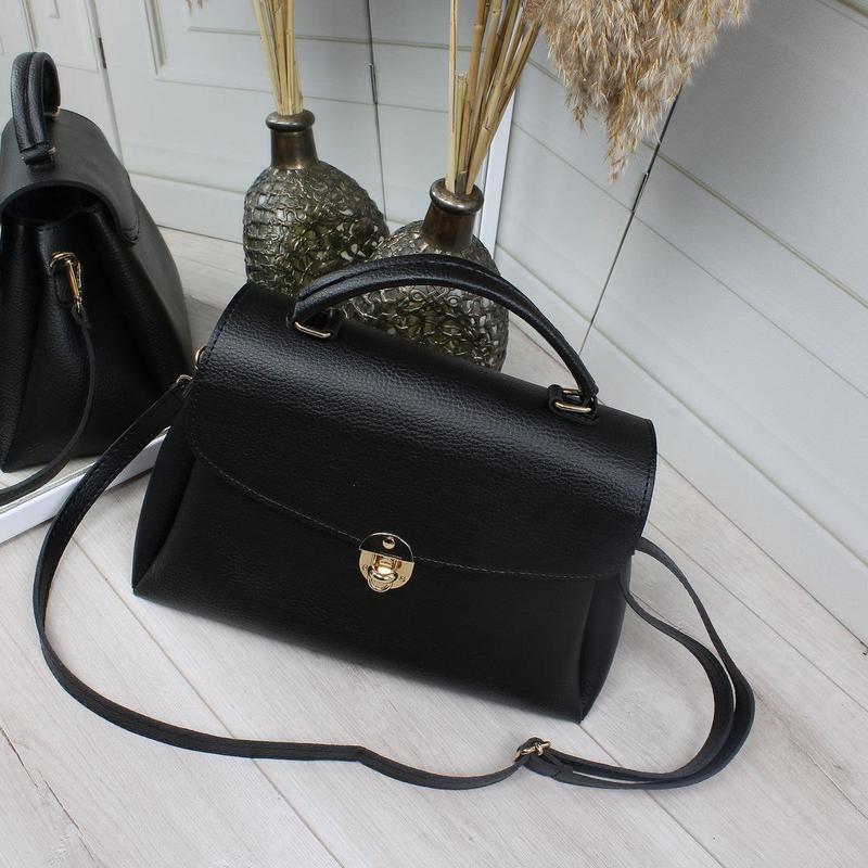 Стильна новинка 😍 Код Д614 Розмір: 32 см ширина по дну. 26 см ширина вгорі. 21 см висота. 12 см дно. Плечовий ремінь регулюється до 130 см. Матеріал: шкір.зам Особливості: закривається на клапан на поворотному замку. Три відділення . В середньому відділенні відкрита кишеня та кишеня на блискавці. Сумочка гарно тримає форму