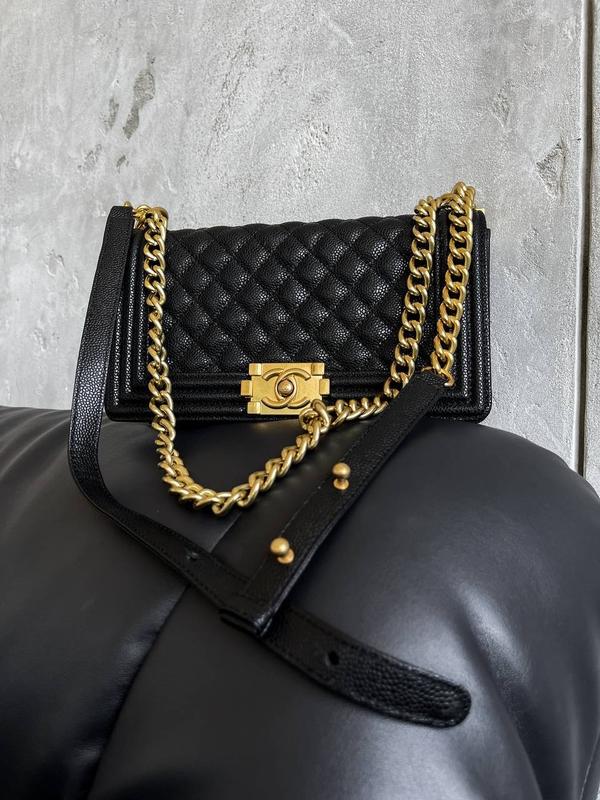 Сумочка Chanel Boy Матеріал: натуральна шкіра, текстиль Розмір: 25-14-9 см У комплектації: брендова біла коробка, оригінальний пильовик, документи. В комплекті 1 шкіряний ремінець з ланцюжком (max довжина 144 см)