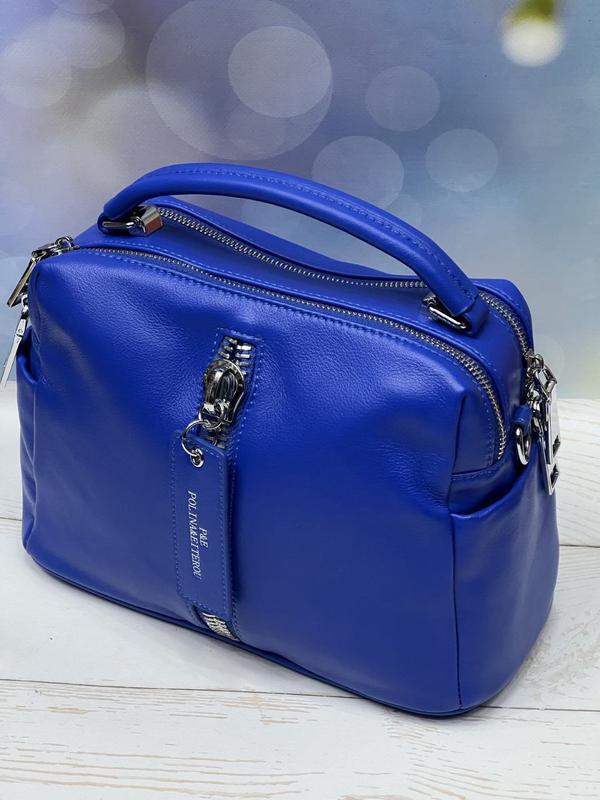 Polina & Eiterou ⠀ Код товара: 9258 BL Цвет: Blue Материал: Натуральная кожа Комплект: 2 ремешка на плечо (тонкий кожаный и текстильный широкий) Размеры: 25×12×20