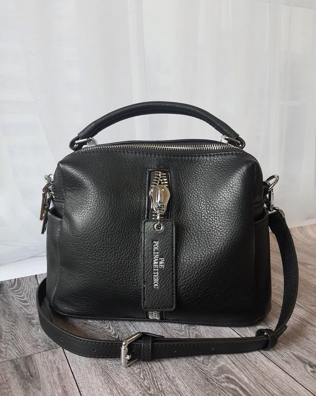 Polina & Eiterou ⠀ Код товара: 9258 B Цвет: Black (Черный) Материал: Натуральная кожа Комплект: 2 ремешка на плечо (тонкий кожаный и текстильный широкий) Размеры: 25×12×20