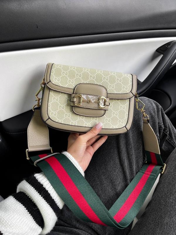 Сумочка Gucci Матеріал: натуральна шкіра, текстиль Розмір: 20-14-5 см Розмір ремінця : - текстильний мін 76; макс 113 - шкіряний мін 109; макс 127 У комплектації : брендова коробка, оригінальний пильовик, крафт папір