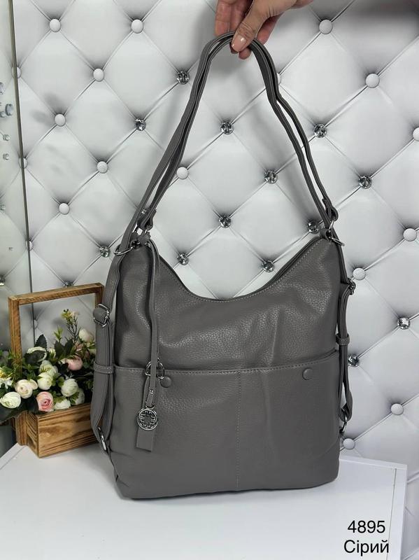 Екошкіра 30 см ширина по дну. 37 см ширина по швах. 29 см висота. Висота ручок 32 см стандартна (регулюється- можна збільшити). Одне відділення на блискавці, розділене навпіл відділенням на блискавці. Всередині кишеня на блискавці та кишеня для телефона. На лицьовій стороні дві кишені на магниті. На зворотному боці кишеня на блискавці.