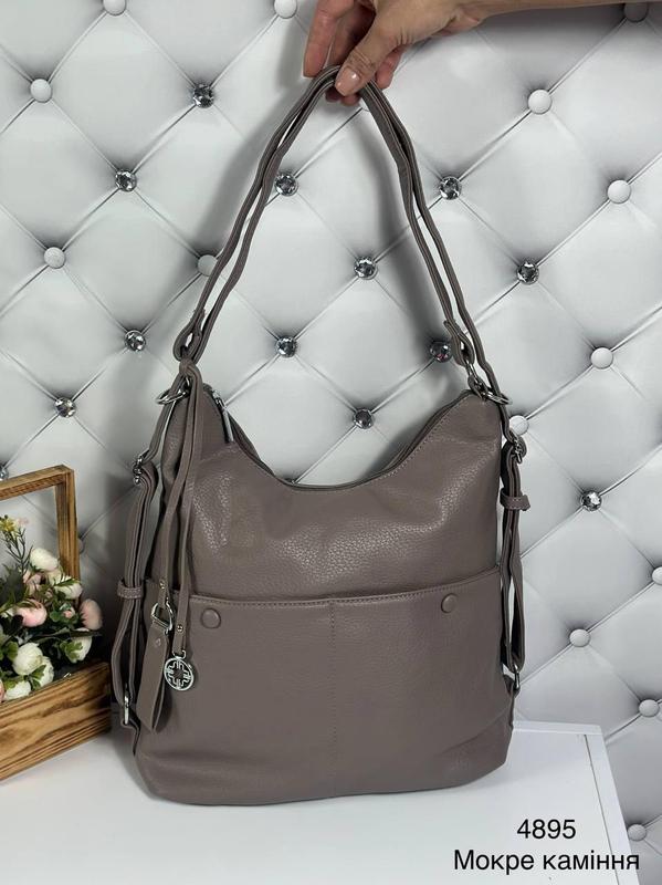 Екошкіра 30 см ширина по дну. 37 см ширина по швах. 29 см висота. Висота ручок 32 см стандартна (регулюється- можна збільшити). Одне відділення на блискавці, розділене навпіл відділенням на блискавці. Всередині кишеня на блискавці та кишеня для телефона. На лицьовій стороні дві кишені на магниті. На зворотному боці кишеня на блискавці.